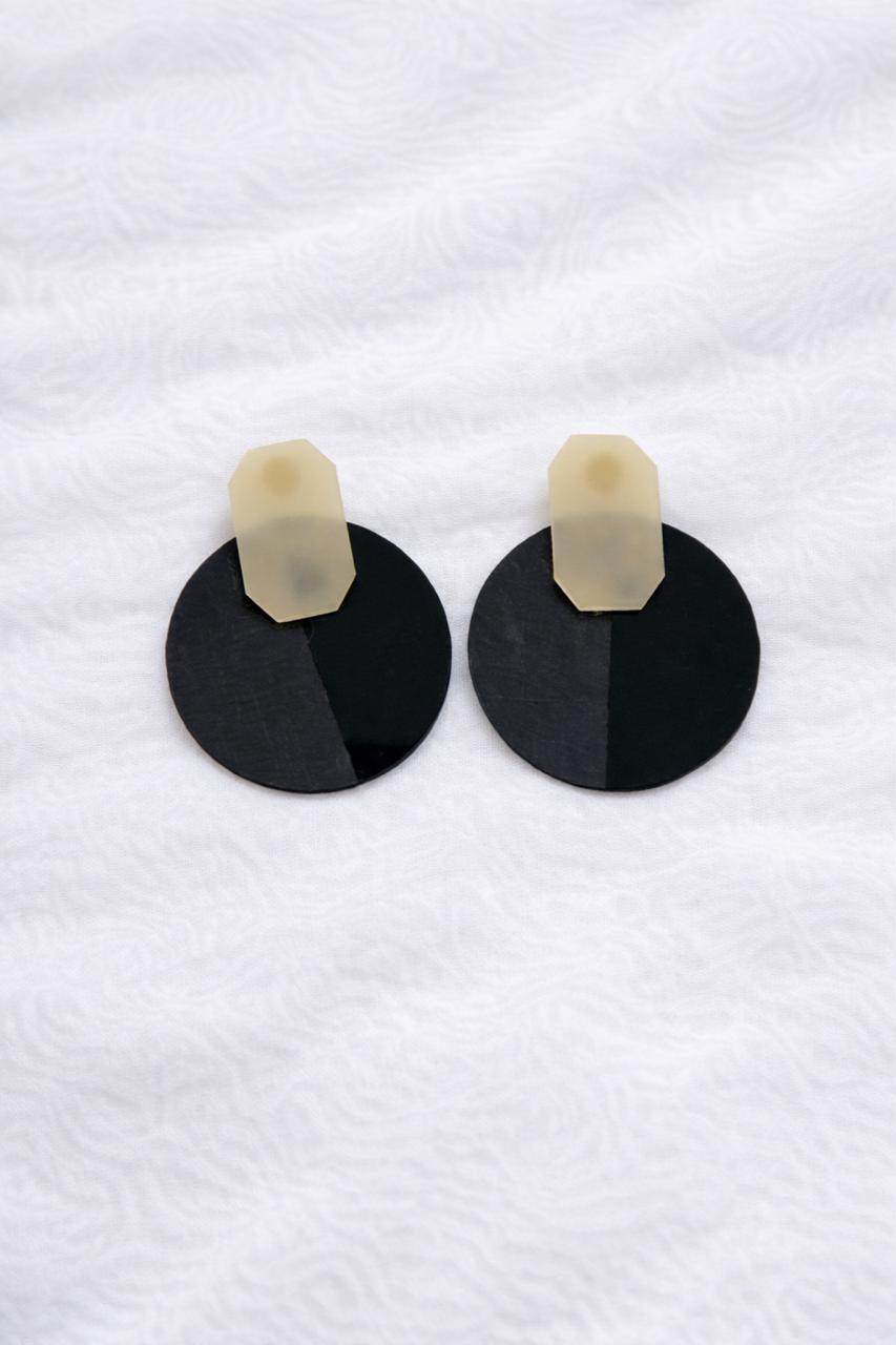 * Material: Acrílico reciclado de alta densidad en negro pleno y una pieza superior translúcida en tono arena.