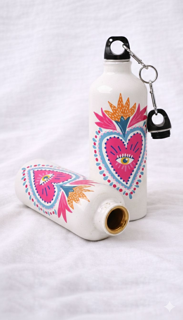Una explosión de color y protección. Esta botella está inspirada en la iconografía del corazón místico, diseñada para quienes llevan su pasión y su energía a la vista de todos.
