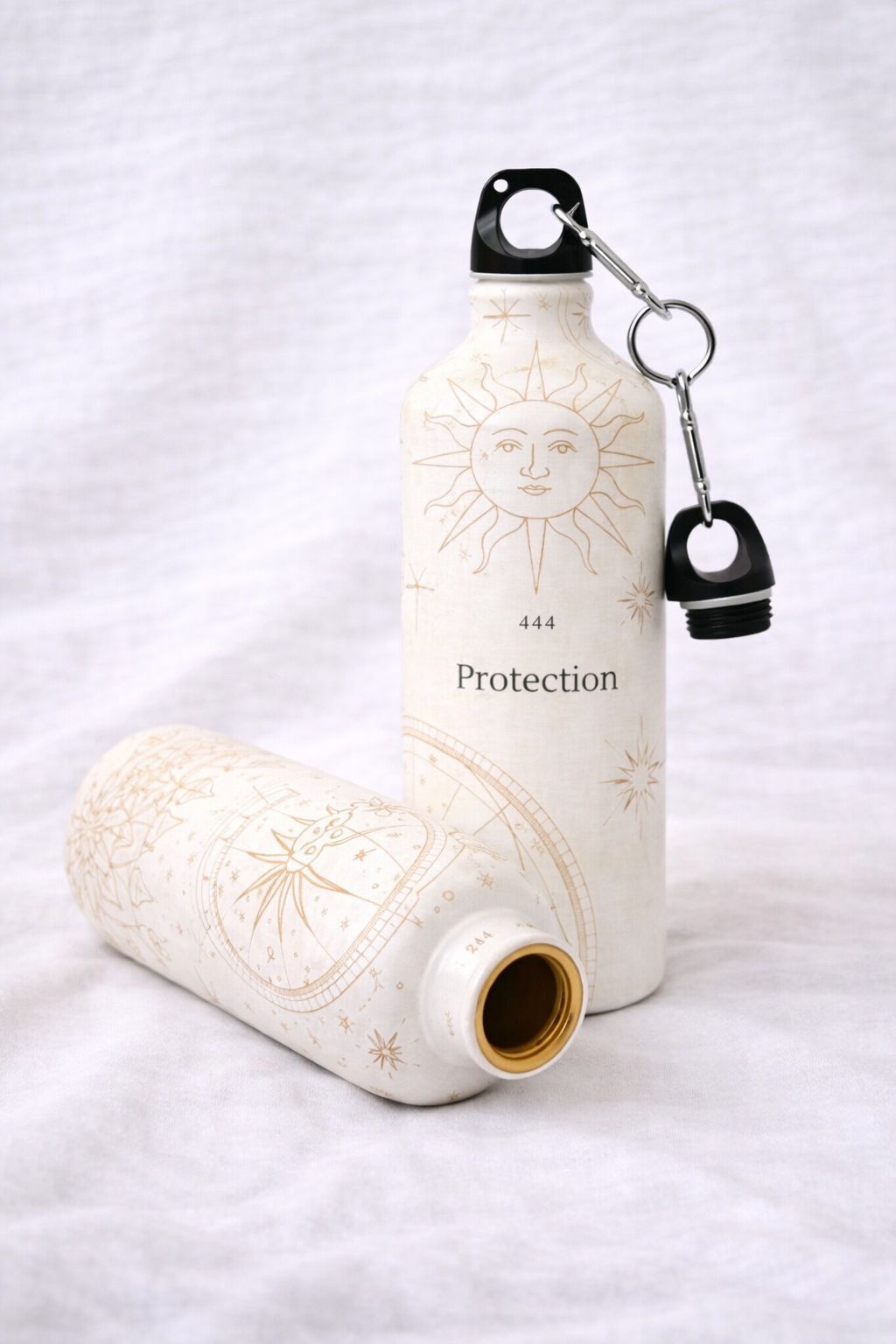 Llevá con vos la energía del sol y la seguridad de los números angelicales. Esta botella está diseñada para ser tu compañera fiel, protegiendo tu bienestar mientras te mantenés hidratado con estilo.