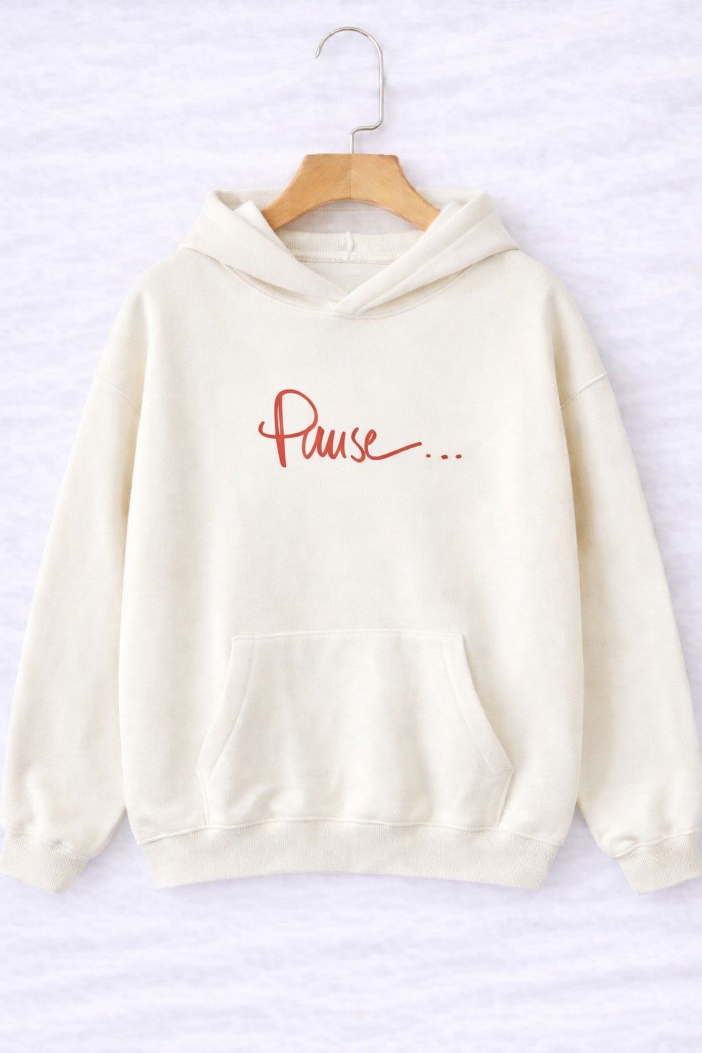 * Estampa Premium: Realizada en DTF en un tono rojo cálido, destacando la palabra «Pause…» con una tipografía fluida y elegante que resiste perfectamente el paso del tiempo.