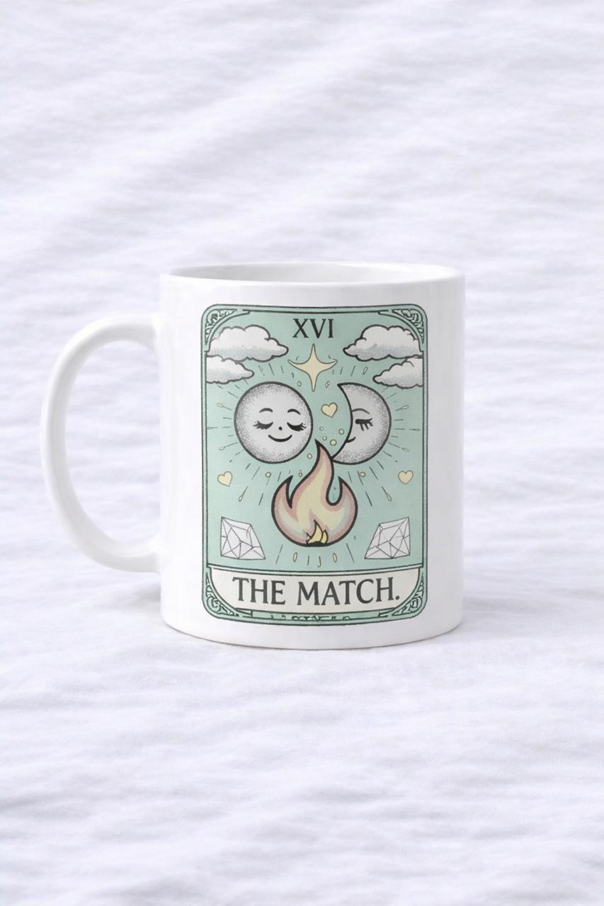 Tu café o té con un toque de magia y destino. Esta taza está inspirada en la simbología del tarot, representando la unión perfecta y la chispa que enciende grandes momentos.