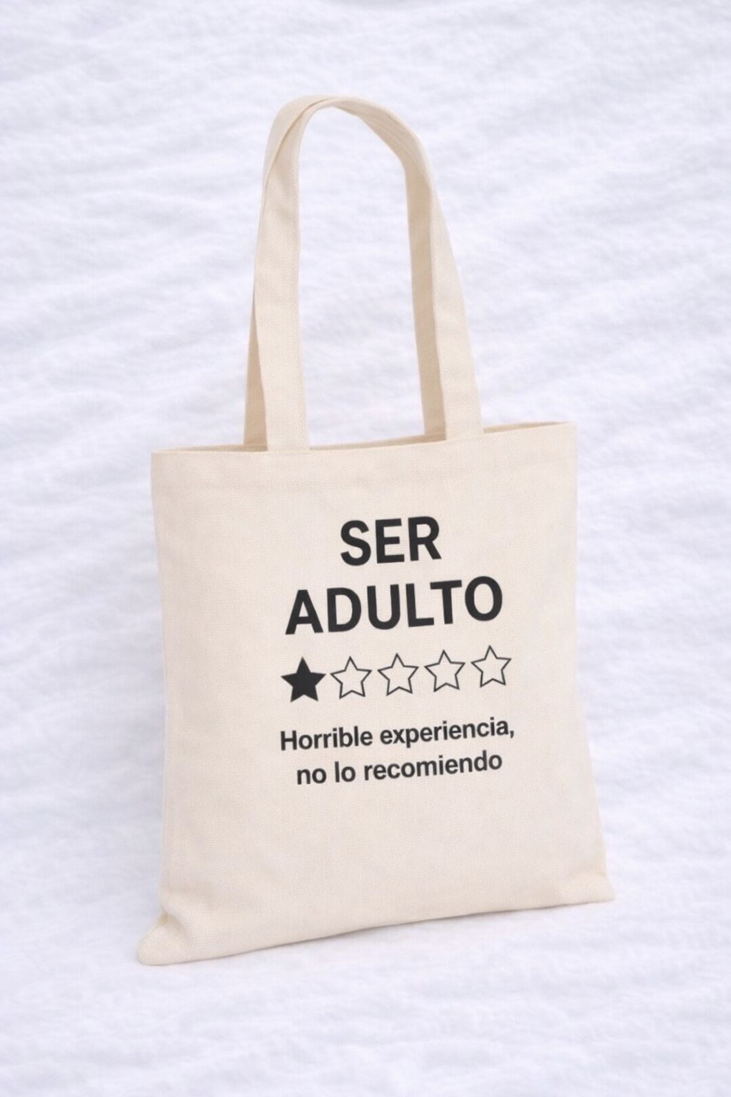* Diseño: Frase «SER ADULTO – 1 estrella. Horrible experiencia, no lo recomiendo».